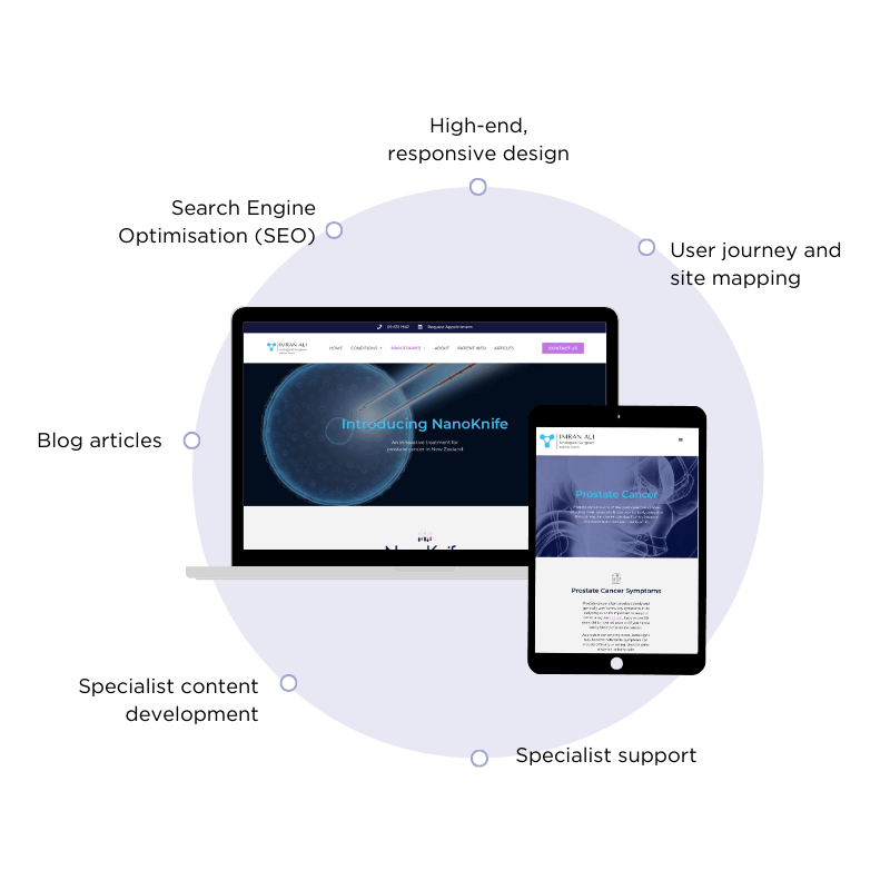 Unlike other website agencies, we manage every aspect of your website design from start to finish—including specialist copywriting and content development. This ensures you receive a custom-designed, fully optimised authority website that not only ranks well on search engines but also attracts the right patients. All with minimal effort from you, so you can focus on what you do best—providing exceptional care.